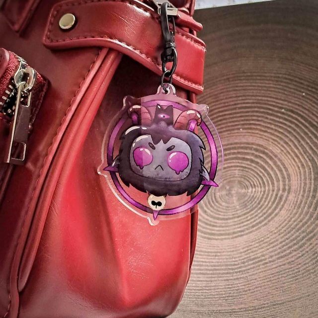 Carry a piece of art with you wherever you go with this hand-drawn acrylic keychain! Measuring 6 cm in length, this keychain features a sleek and durable design crafted from high-quality acrylic and metal. Its unique hand-drawn artwork is paired with a stylish black moon-shaped clip, making it both functional and fashionable.